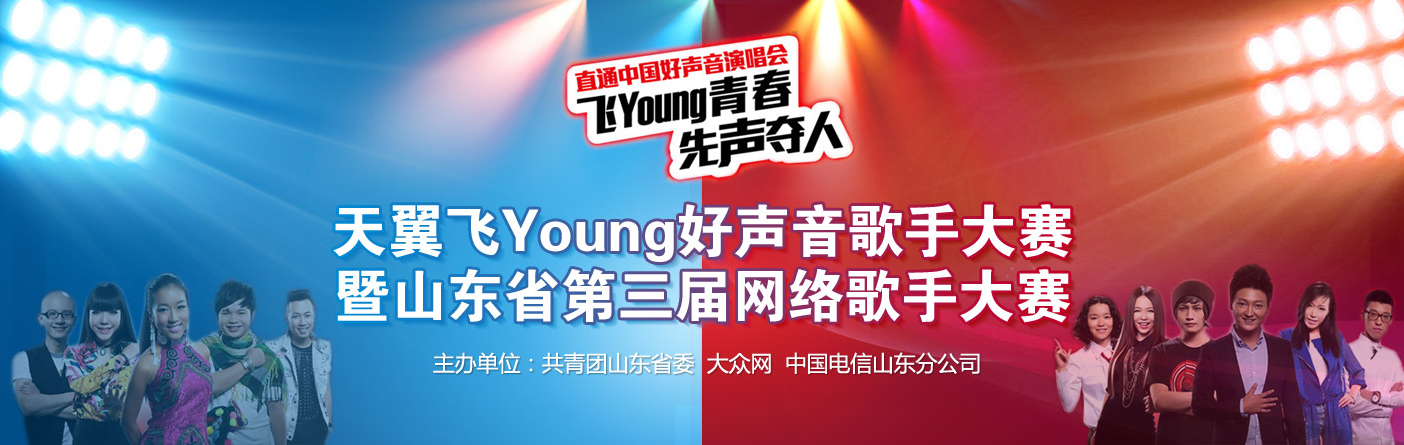 天翼飛young好聲音歌手大賽暨山東省第三屆網(wǎng)絡(luò)歌手大賽東營(yíng)站6月29日開(kāi)始,這是一場(chǎng)全體音樂(lè)愛(ài)好者的狂歡盛宴,這是一個(gè)盡情展示歌聲魅力的閃耀舞臺(tái)!飛young青春,先聲奪人,天翼飛young好聲音歌手大賽,你音樂(lè)夢(mèng)想的起點(diǎn)!