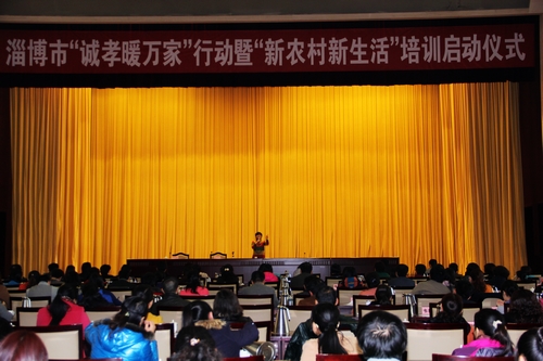2月25日,淄博市舉辦“誠孝暖萬家”行動暨“新農村新生活”培訓啟動儀式。啟動儀式上,安排部署了全市“誠孝暖萬家”行動、“新農村新生活”培訓工作目標任務,為公益宣講師代表頒發了聘書。市委副書記周連華,市委常委、宣傳部長郭利民、市婦聯主席翟乃翠,市委宣傳部副部長、文明辦主任于康梅,市婦聯副主席許艷萍出席活動。