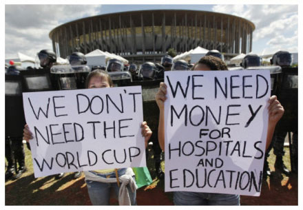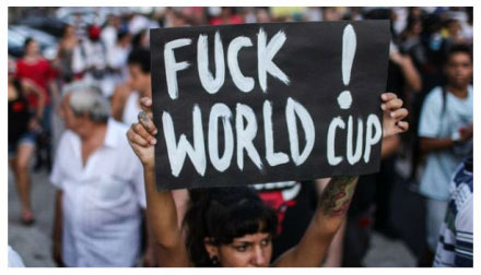 雖然,巴西民眾還是在譴責(zé)政府。巴西世界杯,大概是最不受當(dāng)?shù)厝酥С值囊粚檬澜绫。Reddit網(wǎng)友Sbzxvc整理了一堆巴西人的示威圖片,大概能讓你對(duì)這件事有所感覺:
