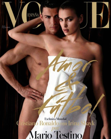 圖為C羅全裸攜手超模女友Irina Shayk登西班牙版《Vogue》六月刊封面。