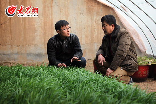 一位客戶從濟南市區開車來惠龍韭園采購盆景韭菜。楊春衛 攝