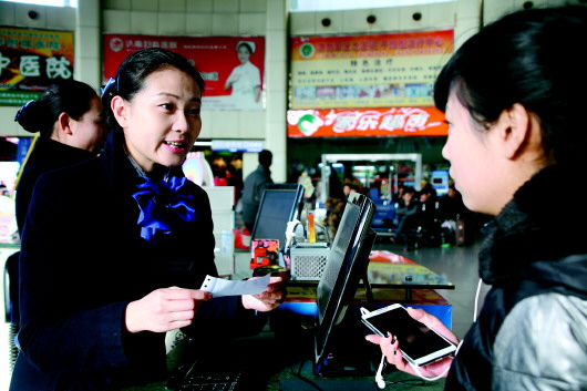 1月3日,濟南長途汽車總站旅客熙熙攘攘,春運氣息漸濃。在車站總服務(wù)臺,雙語站務(wù)員單笑嬌微笑著為旅客服務(wù)。