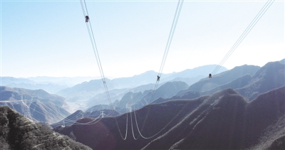 記者在基塔下與他們告別時,白建偉說:“雖然艱苦,但保障線路不出問題,就是我們的責任。坐在輸電線上望望遠處的風景,有時覺得也是一種幸福。”說完,他們3人沿著電線漸漸消失在大山里。