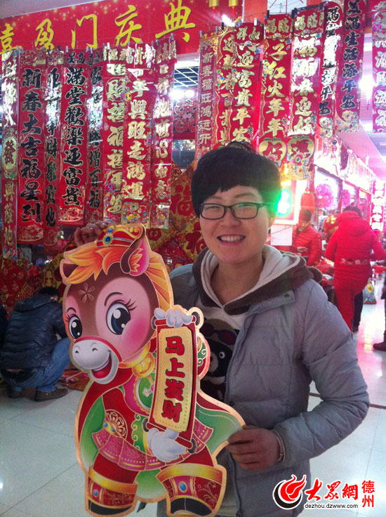 隨著馬年春節(jié)的臨近,德州市德百物流批發(fā)城、城隍廟市場等都在入口處顯眼的地方開辟出一塊年貨區(qū),紅彤彤一片,專門銷售春聯(lián)、福字、窗花、門貼、中國結(jié)、紅燈籠等中國特色的年貨。