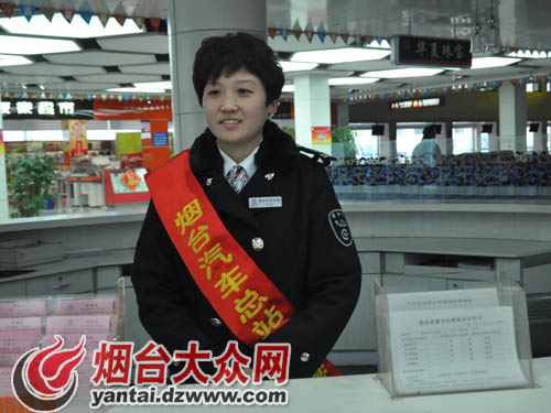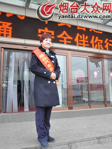 說話的人叫做陳海燕,是煙臺汽車總站“春雨服務班”的客運班長,她的日常工作包括迎門和幫扶,無論是解答旅客們的咨詢還是幫助旅客提行李,都屬于陳海燕的工作范圍。她的工作是兩班倒,上午班從清晨4時15分到中午12時,下午班從12時到下午6時。“今天是大年初一,主要都是去往附近縣市區的旅客,車站相對輕松一些。”