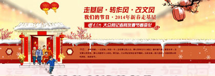 2014年春節期間,大眾網記者將深入城市、鄉村、廠礦企業、車站碼頭等基層崗位,采訪工人、農民、普通市民,傾聽百姓心聲,了解社情民意,記錄感人故事,體驗基層群眾所需所求,全面展示基層群眾的工作和生活,展現出社會和諧、經濟發展、文化繁榮的生動景象,反映基層干部群眾奮發向上的精神風貌和節日狀態,營造出歡樂祥和的節日氛圍。