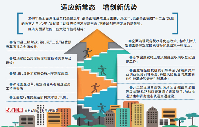 2015年是全面深化改革的關鍵之年,是全面推進依法治國的開局之年,也是全面完成“十二五”規劃的收官之年。今年,我省將主動適應經濟發展新常態,不斷增創經濟發展的新優勢。