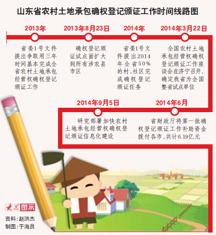 去年,我省就提出,爭取用3年時間完成全省農村土地承包經營權確權登記頒證,比全國提前兩年。截至8月底,45808個村(社區)完成土地承包經營權登記環節的工作,占總數的60.82%;24693個村(社區)頒發承包經營權證書,占總數的32.78%,年底將達50%以上。其中,東營、淄博、濰坊、棗莊、青島、臨沂進度較快。