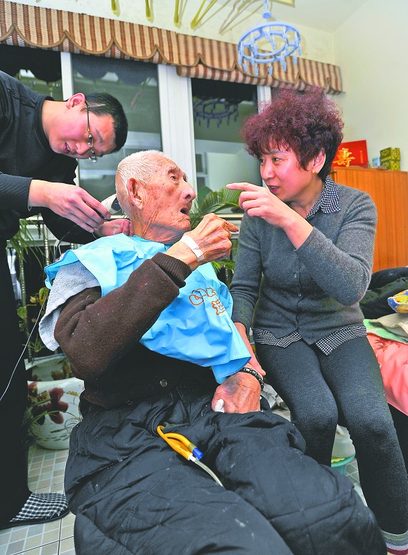 于霄寧忙著給老人理發 ( /1)