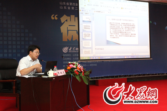 新華網編委、終審發稿人朱繼東作題為《微博興起視野下的網絡突發事件應對》的主題演講