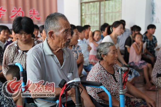 80多歲的湯大爺每周都坐著輪椅來聽課