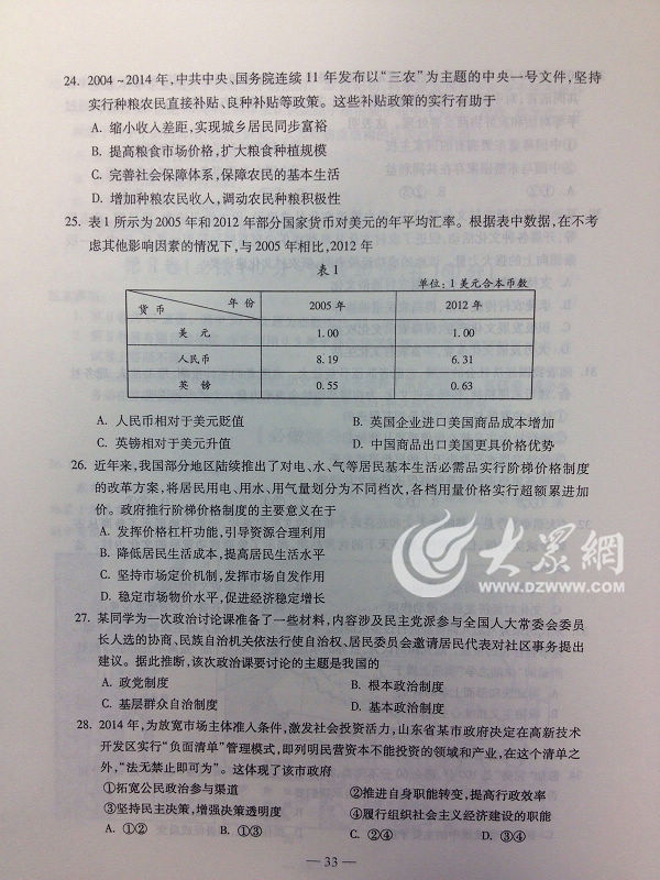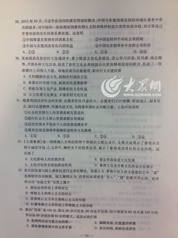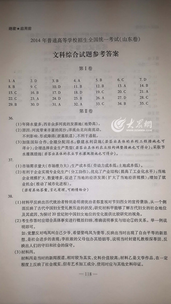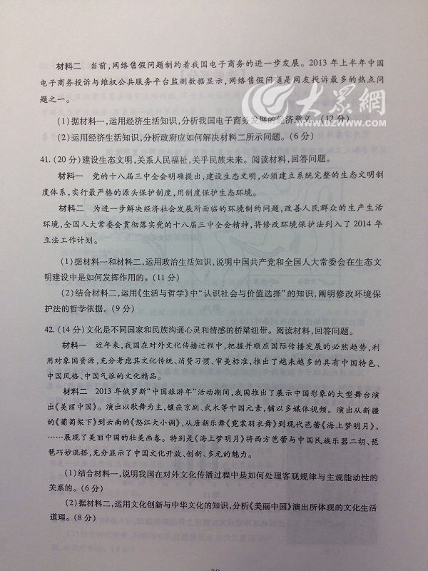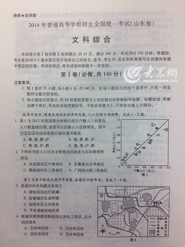 大眾網(wǎng)6月8日訊 今天下午,2014年山東高考落下帷幕,大眾網(wǎng)第一時間對試題及答案予以公布。以下為文科綜合試題: