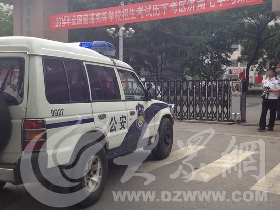 取回證件的警車駛近考點