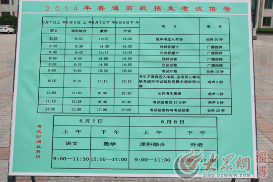 據(jù)淄博實驗中學一名陳姓負責人介紹,由于今年考場布置比去年提前,所以考生看考場的時間也放寬至一下午。據(jù)了解,此次淄博實驗中學共設(shè)82個考場,前來該考點的考生均為理科生。除此之外,為了防止作弊的情況出現(xiàn),今年仍然實行進考點前金屬探測,手機、手表以及一切金屬都禁止帶進考場。還需考生注意的一點是,首場考試語文從9點開考,考生可提前35分鐘進入考場,考試開始后15分鐘禁止考生入場,考生應根據(jù)“踩點”情況把握時間,切勿遲到。