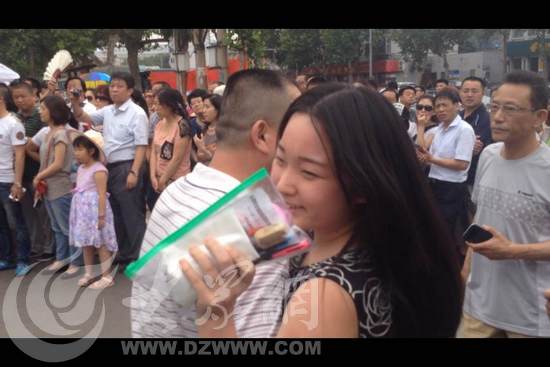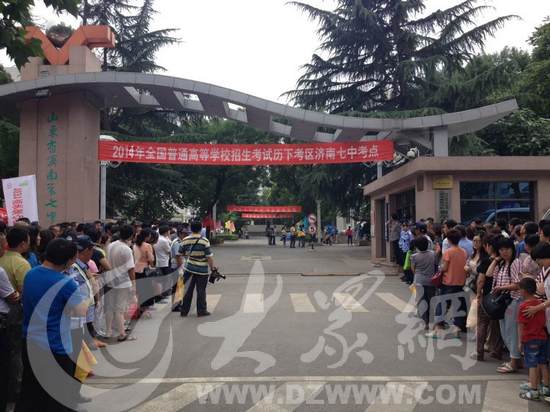 濟南七中考點外,家長在夾道迎接考生