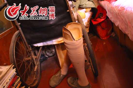 朱彥夫床邊擺放的假肢,假肢上還穿著一雙舊的解放鞋。