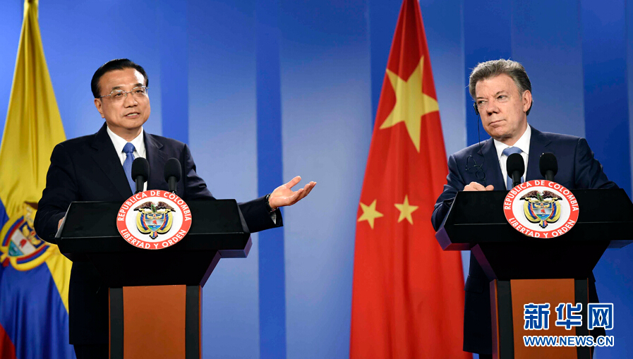 當(dāng)?shù)貢r(shí)間5月21日下午,國務(wù)院總理李克強(qiáng)在波哥大同哥倫比亞總統(tǒng)桑托斯舉行會(huì)談后共同會(huì)見記者。 新華社記者 張鐸 攝