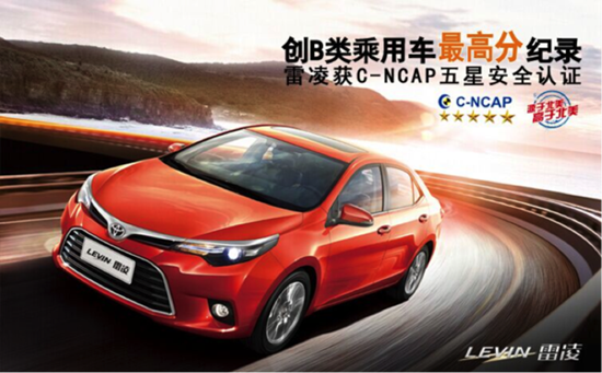 2015年最新一批C-NCAP碰撞車型成績公布,雷凌以59.2分的優(yōu)秀成績(總分是62分)榮登學(xué)霸寶座,創(chuàng)下B類乘用車(長度大于4.5m且排量大于1.6L的乘用車)最高分紀(jì)錄。,輕松斬獲C-NCAP五星桂冠,碰撞成績力壓同級競品,顯示強(qiáng)大的底氣和實(shí)力。