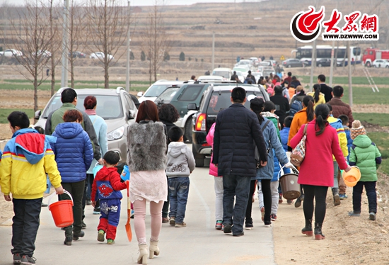3月14日上午八時許,四十多輛大巴車和近兩百輛私家車在市政府廣場和會展中心集合后,統(tǒng)一出發(fā),大部隊浩浩蕩蕩的趕往兩個植樹地點——東港區(qū)南湖鎮(zhèn)和陳疃鎮(zhèn)。