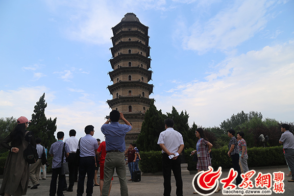 25日,與會專家學者參觀臨清舍利寶塔。大眾網記者 王傳勝 攝