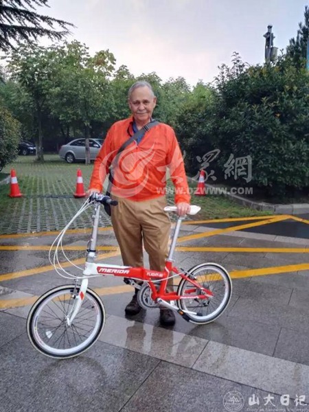 昨天我從賓館(泉城大酒店)出來準備到山東大廈參加史學大會開幕式,可不小心誤乘了49路公交,車開到濼文路的時候我感覺路線不對,便在臨近的公交站下車,打算走到山東大廈。就在這時一個騎著自行車的中國老人可能是注意到我迷路了,在我身邊停了下來,于是我和他用中文攀談起來。我們聊到了各自的家庭、孩子……我沒有問到他的工作,他也不知道我是一個史學家,感覺只像是兩個相隔半個地球的老頭兒在午后閑談,說的都是些生活小事,卻溫暖又開心。原來他今年69歲,比我小了將近十歲,可我們的談話卻特別投機,感覺只像是兩個多年未曾謀面的老友在追憶往事……不知不覺間,他竟陪我走到了山東大廈,到門口的時候,這位中國老弟說:“上年紀的人,跟著擠公交多不方便,況且,您要在濟南要住一個星期,不如就用我的自行車吧,想到哪兒,自己騎著車就去了。”聽到這句話,我先是感到震驚:我去過很多國家的很多城市,像是英國、法國、日本等等,所有的國家都很難、甚至說不會發(fā)生類似的事情,這種對長者的尊敬、對賓客的熱情只有中國有!只有山東有!而震驚之余,便是想著怎么婉言謝絕,因為總覺得不大合適、不好意思。可他眼神很真誠、態(tài)度很堅定,一再堅持下,我們“簽訂”了非正式但夠可靠的“自行車條約”,約定等大會閉幕,我按照他留下的聯(lián)系方式找他還車。雖然只是口頭一說,但我覺得比歷史上任何著名條約更能打動我。事實上,我對自行車有著別樣的感情,當年旅居歐洲的時候,我曾在德國、法國等好多國家間騎行,而今天自行車帶給我的,已經(jīng)不只是簡單的快樂了,想想看,除了感動和感激,我真的找不到其他詞來形容這個神奇的經(jīng)歷了。