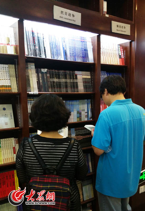 新華書店的“抗日戰(zhàn)爭(zhēng)”書架前聚集了不少讀者