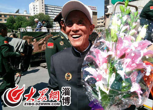 大眾網(wǎng)淄博9月3日訊(記者 曹亮 見習(xí)記者 丁穩(wěn))9月3日,抗戰(zhàn)勝利70周年閱兵儀式在北京舉行,馬耀南烈士之子馬立修代表英烈子女接受檢閱。馬立修是淄博唯一一位以英烈子女家屬代表獲邀參加檢閱的。今天上午11時40分許,馬立修受檢閱后手捧鮮花返回北京駐地。