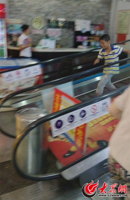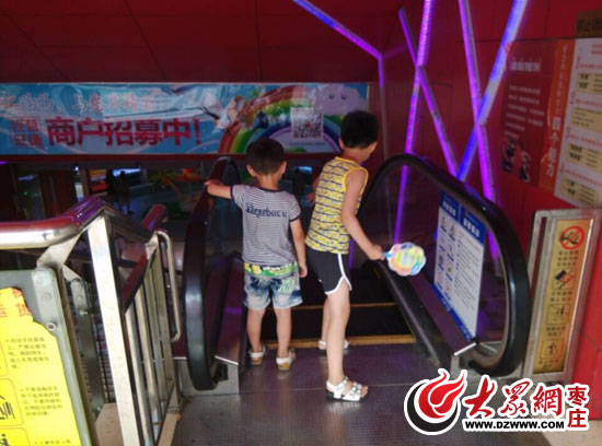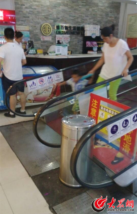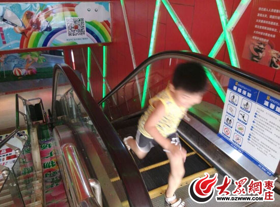 28日上午10時,有兒童在德州百貨大樓電梯上跑跳