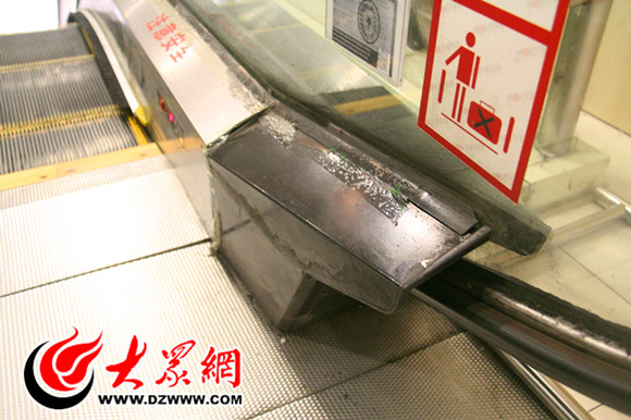 煙臺大悅城一處電梯踏板有翹起痕跡