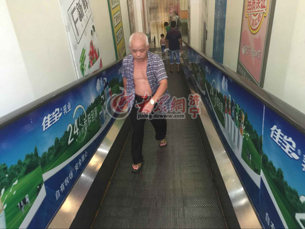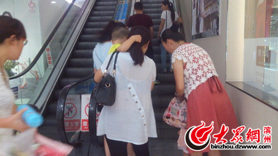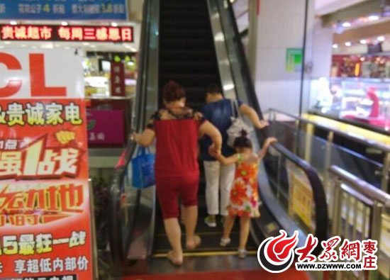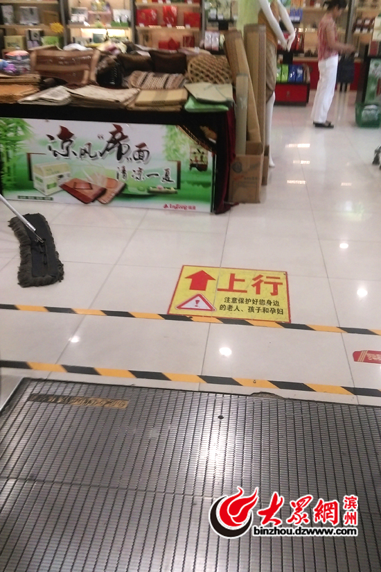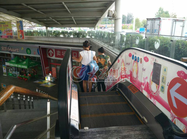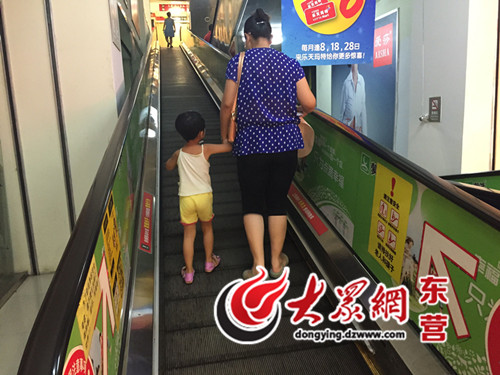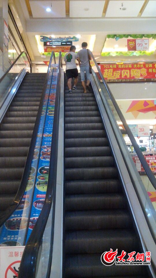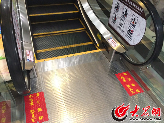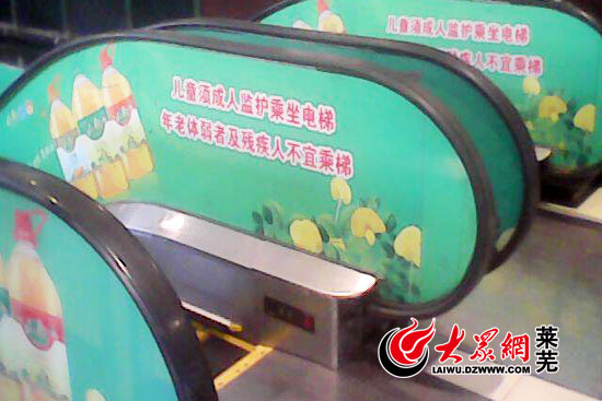 威海振華商廈:扶梯針對老人和兒童粘貼提醒