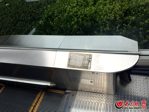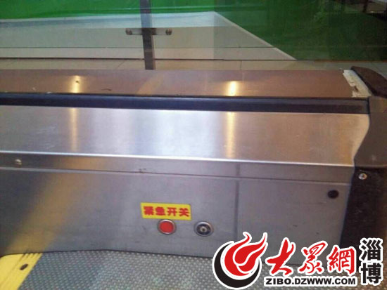 青島萬達(dá)CBD店正門的露天扶梯沒有紅色急停按鈕。