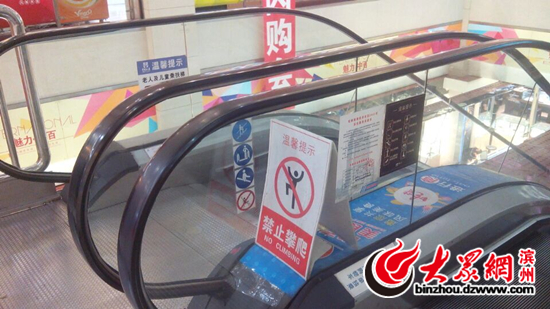 威海威高廣場:一層扶梯特別提示“禁止攀爬”