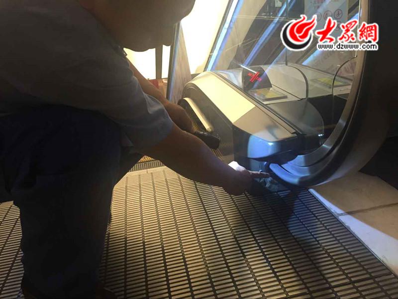濟南世茂國際廣場商場扶梯在進行地毯式檢修。