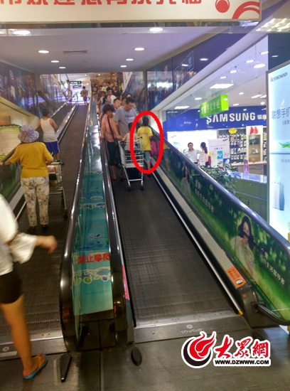 今日有媒體總結(jié)乘坐扶梯“10大危險動作”,其中包括禁止將孩子放入手推童車乘梯等。28日下午,大眾網(wǎng)記者來到德州澳德樂時代廣場,在一處扶梯口蹲守短短半小時,目睹各類危險乘梯行為紛紛上演。