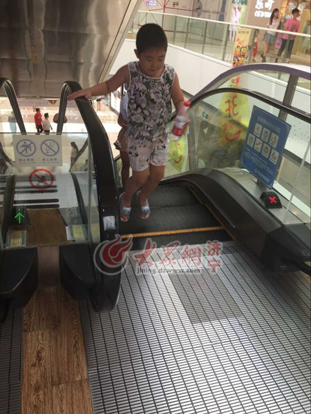 濟寧金宇路貴和購物中心:扶梯無黃色警戒線