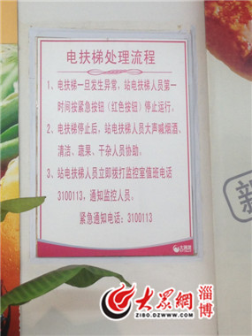 淄博大潤發(fā):有站電扶梯工作人員 維保期限過期