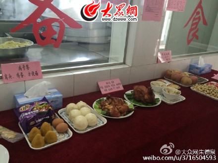 過節七天吃什么,濟南監獄采用明白紙加實物陳列方式向服刑人員公示。記者看到,糖果瓜子每人一份,還特意為糖尿病等特殊人員準備了病號飯。除夕上午的主菜,每人一支清蒸雞。