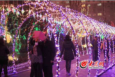 廣場西側是繁星點點的“星光大道”。五彩的小燈泡纏繞形成的通道十分夢幻。人們漫步其中,仿佛置身幻境。