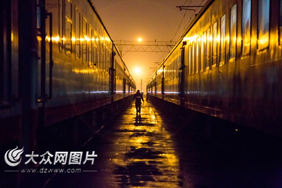 臨走大眾網記者注意到,除夕的夜已經深了。黑色大幕之下,依然是一個個忙碌的身影,他們是奉獻春運,確保旅客列車安全的“幕后英雄”。