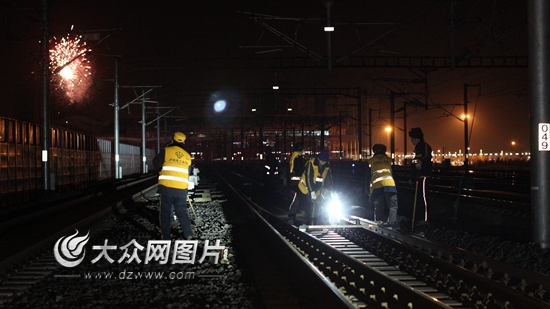 耀眼的禮花在空中閃爍,鞭炮聲打破了除夕之夜,王宗遠望著新年的天空,對自己這份“折返跑”的工作很自豪。他說,此時此刻,檢查工區的工人沒回家,在檢查線路,聯絡線保養點的線路工對有碴道岔進行整修,旅客出行離不開大伙,大伙也用自己特有的方式,迎接著羊年春節的到來。