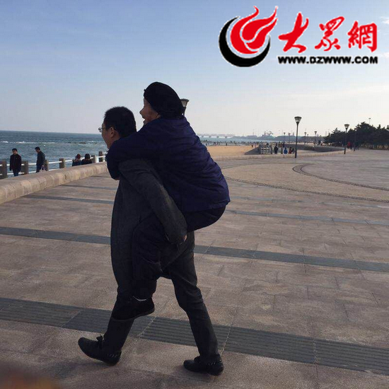 上午12點多,何召華和愛人劉紅英,帶著15歲的兒子,開著私家車陪老人來到了日照最早的海邊風景區——燈塔廣場。由于年紀大,兩位老人拄著拐杖小心的邁著步子,何召華則在一旁攙著奶奶。走了一會兒,在離海邊不到100米的時候,看著奶奶已經走不動,知道奶奶小腳走路邁力,何召華干脆背起奶奶往海邊走。“一開始老人不同意,說讓人看見了笑話。”幾經央求,老人才同意讓何召華背著。就這樣,何召華在前面背著奶奶,劉紅英和兒子在后面攙扶著爺爺。有老有少、一家人其樂融融的看海景象,引來眾多市民和游客的稱贊。“家有一老,如有一寶啊”,不少市民還拿出手機來拍下這溫馨一幕。