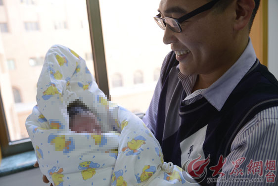 煙臺毓璜頂醫院產科病房里,市民王先生抱著剛出生的女兒,一直舍不得放下。