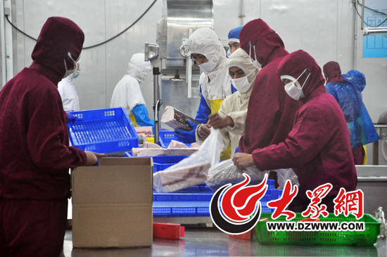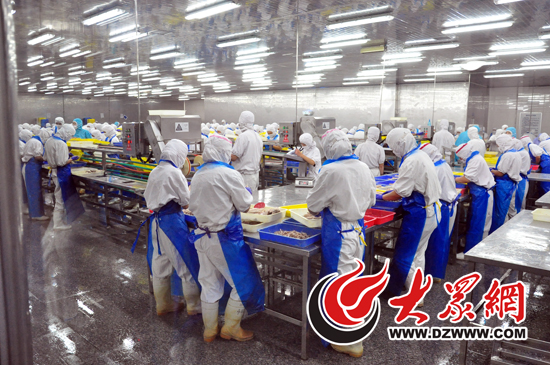 8月16日,在山東藍潤水產有限公司的金槍魚罐頭生產車間,激昂的音樂聲中,工人們按照各自分工正在緊張的忙碌著。工作人員告訴記者,播放音樂是為了讓工人們的工作不單調,能夠提高工作興致。據介紹,目前公司金槍魚罐頭車間共有500多名工人,日處理原材料60噸,產出24噸,年產量可達到2萬噸。