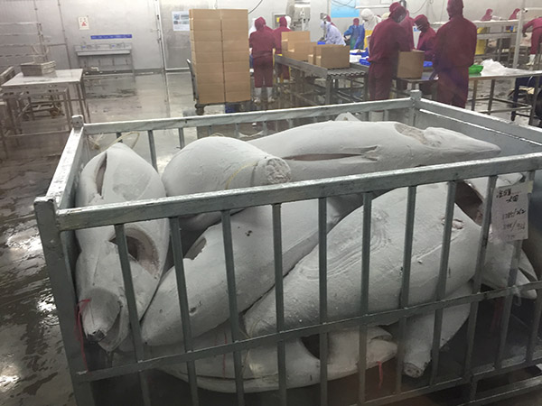 冷凍后待處理的金槍魚,大的金槍魚可達300公斤