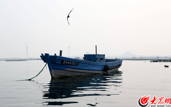 今天下午,采訪團記者們從桑溝灣碼頭乘坐漁家木船開啟海上休閑體驗之旅。漁船在碧藍的大海上緩慢前行,船后翻滾著白色的水花,岸邊的漁船、風車在視線中漸漸消失,一條條浮萍鏈也慢慢的出現在眼前,成群結隊的海鷗,你追我趕的搶奪著游人拋撒在海中的食物。隨行的桑溝灣海洋牧場劉經理告訴我們,漁民常年“吃穿住”在海中漂浮的房屋中,他們日出而作,日落而息,牧海而耕。劉經理稱,因地理位置優越、天然水質優良,海產品產量高、品質佳,桑溝灣出產的扇貝,曾作為國宴用品招待過美國前總統尼克松。