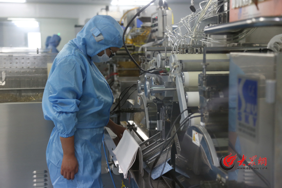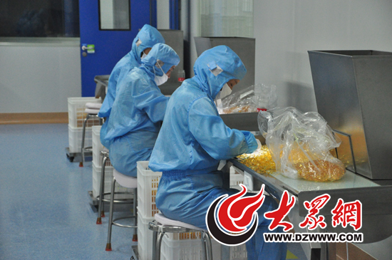大眾網(wǎng)榮成8月17日訊(記者 王曉青) 從膠囊囊皮制作到干燥,再到選揀、包裝,每一道工藝都有嚴(yán)格的檢測(cè),工人們嚴(yán)格按照規(guī)定“全副武裝”操作,這是威海百合生物技術(shù)股份有限公司一個(gè)軟膠囊工廠的生產(chǎn)場(chǎng)景。8月17日,“海上糧倉(cāng)·全國(guó)主流網(wǎng)絡(luò)媒體山東海洋行”采訪團(tuán)參觀了這家從事海洋活性物質(zhì)提取、保健品和化妝品加工為主的高新技術(shù)企業(yè)。