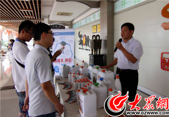 世代海洋生物科技有限公司董事長(zhǎng)李健向媒體記者介紹海藻肥生產(chǎn)情況