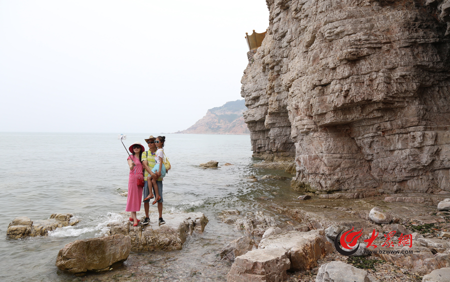 長島九丈崖景區(qū),山海相宜,吸引游人紛紛拍照留念。記者 孫晨 攝