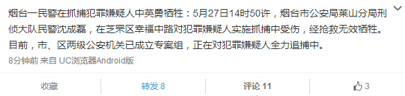 煙臺市公安局官方微博截圖