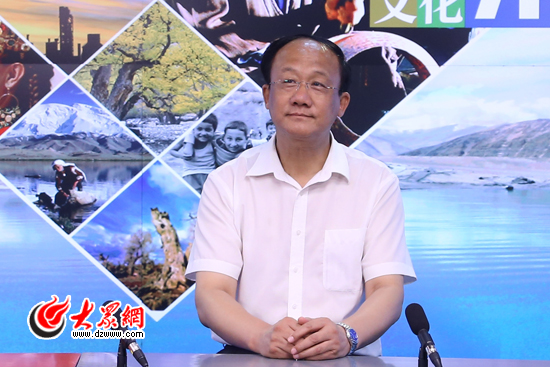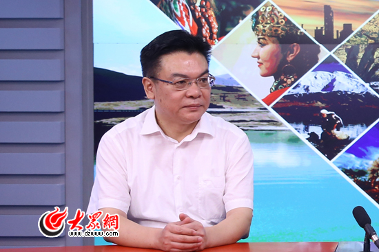 行署副專員、山東省援疆指揮部副總指揮秦存華做客大眾網(wǎng)演播室。(亓翔 攝)